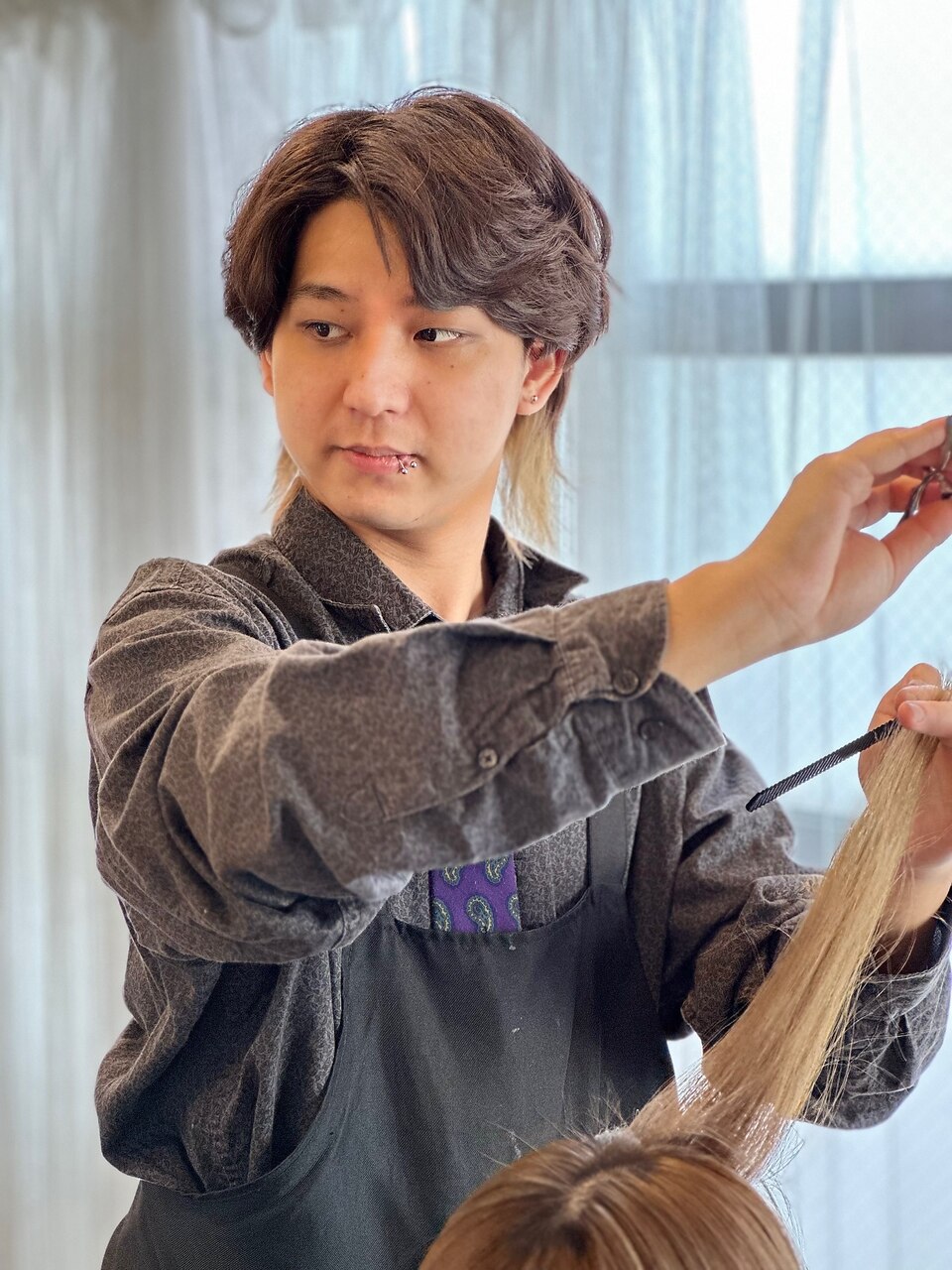 - お客様一人ひとりに合ったスタイルを提案し、丁寧な施術を心がけています。特にカラーが得意で、ナチュラルなデザインからトレンドを意識したカラーまで幅広く対応いたします。楽しい時間を過ごしていただけるよう、明るい接客を心がけていますので、ぜひお気軽にご指名ください!お会いできるのを楽しみにしています!